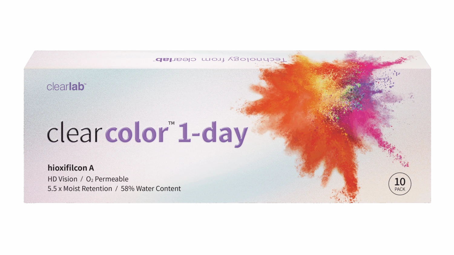 De clearcolor™1-day zijn cosmetische daglenzen en versterken jouw natuurlijke oogkleur. Blauwe ogen worden blauwer en bruine ogen worden bruiner. De clearcolor™1-day lenzen zijn gemaakt met een grafische kleurtechnologie. Dit betekent dat de lens uit een mix van drie kleuren bestaat. De clearcolor™1-day lenzen zijn beschikbaar in de kleuren: Light Blue, Blue, Grey, Hazel en Green. De lenzen zijn beschikbaar vanaf de sterkte -10 tot en met +6. In een doosje zitten 10 daglenzen. Het is met deze lens helaas niet mogelijk om een andere oogkleur te creëren, bijvoorbeeld bruine ogen blauw maken. Let op: draag deze lens echt maar één dag. Wil je de lens langer dan 1 dag gebruiken? Bekijk onze party- of kleurlenzen die je een maand kunt gebruiken.