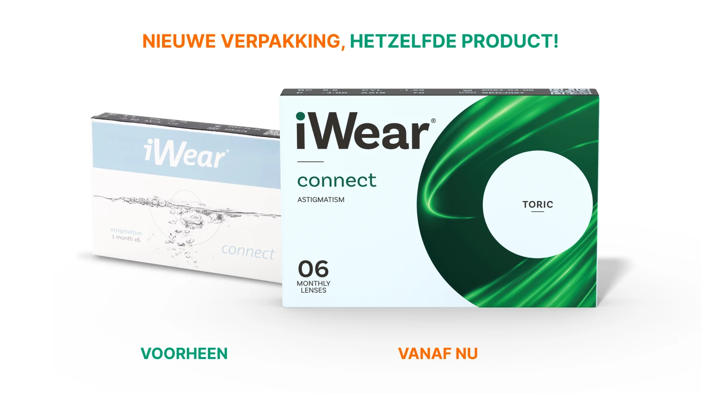 iWear Connect for Astigmatism zijn zachte maandlenzen die je tot 12 uur lang kunt dragen en zijn gemaakt van Silicone Hydrogel. Silicone Hydrogel lenzen laten zo veel mogelijk zuurstof door, dit voorkomt irritatie en droge ogen. Lenzen van dit materiaal zijn gezonder voor je ogen, hebben een hoog draagcomfort en voelen zelfs na lang dragen nog prettig aan. iWear Connect for Astigmatism zijn torische lenzen. Ze corrigeren een cilinderafwijking en zijn dus geschikt voor mensen met astigmatisme. In één doosje iWear Connect for Astigmatism zitten 6 lenzen.