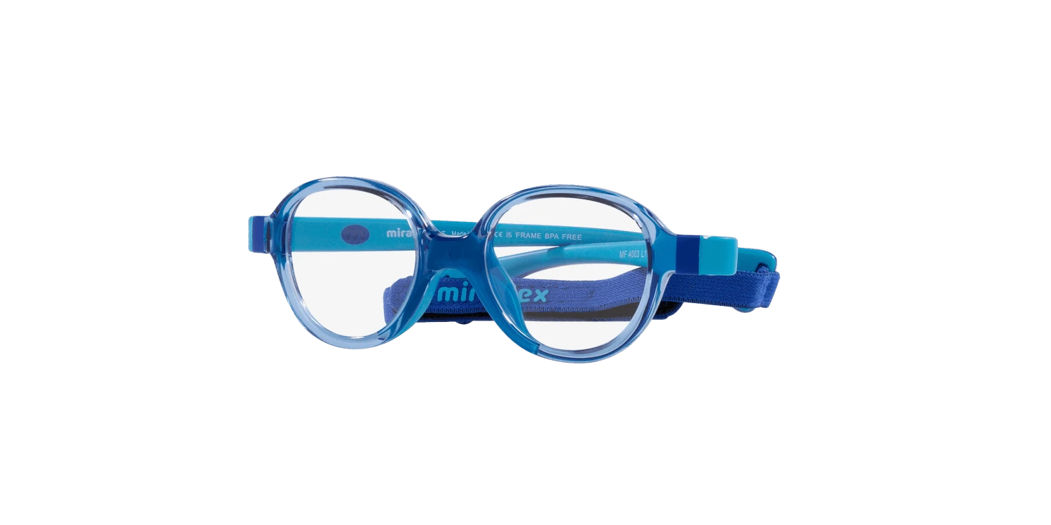 Is het tijd voor een (nieuwe) bril? Misschien is dit wel het montuur dat je zoekt! Deze Miraflex bril is ontworpen voor kinderen. Hij is blauw en gemaakt van kunststof. De Miraflex MF4003 L117 heeft een rond montuur. Dit past goed bij een langwerpige, ovale, vierkante of driehoekige gezichtsvorm. Voldoet de Miraflex MF4003 L117 aan jouw wensen en is jouw sterkte voor enkelvoudige glazen maximaal -5/+5 of voor multifocaal maximaal -4/+4? Bestel deze dan direct online! Is je sterkte hoger of heb je specifiekere wensen? Kom dan langs in één van onze winkels. Wij staat voor je klaar.