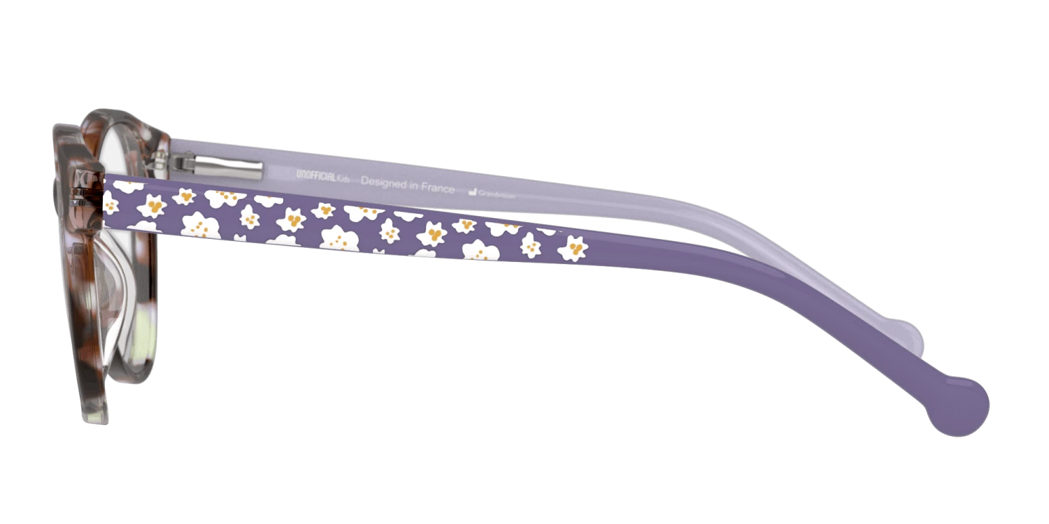 Is het tijd voor een (nieuwe) bril? Misschien is dit wel het montuur dat je zoekt! Deze Unofficial Junior bril is ontworpen voor kinderen. Hij is paars en gemaakt van kunststof. De Unofficial Junior UNOK0065 heeft een rond montuur. Dit past goed bij een langwerpige, ovale, vierkante of driehoekige gezichtsvorm. Voldoet de Unofficial Junior UNOK0065 aan jouw wensen en is jouw sterkte voor enkelvoudige glazen maximaal -5/+5 of voor multifocaal maximaal -4/+4? Bestel deze dan direct online! Is je sterkte hoger of heb je specifiekere wensen? Kom dan langs in één van onze winkels. Wij staat voor je klaar.