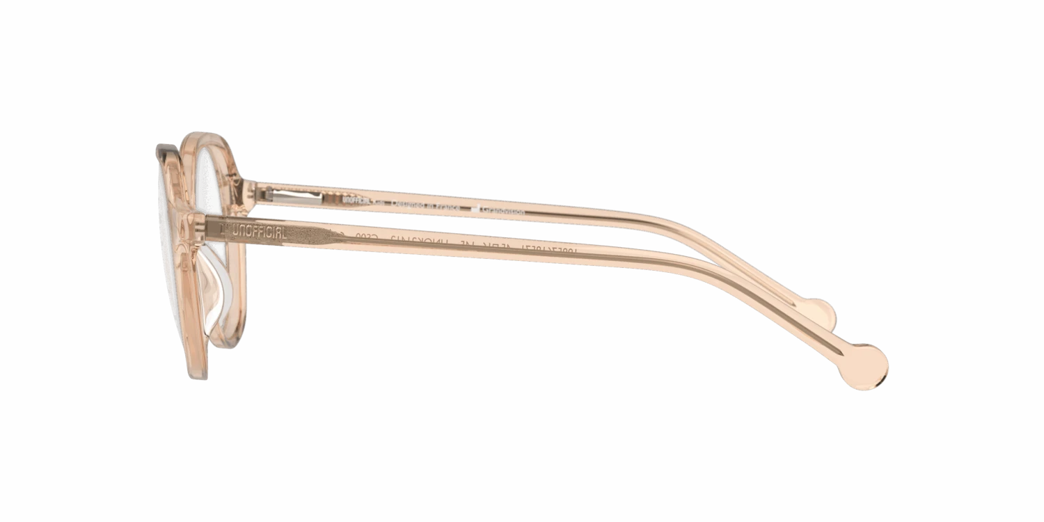 Is het tijd voor een (nieuwe) bril? Misschien is dit wel het montuur dat je zoekt! Deze Unofficial Junior bril is ontworpen voor kinderen. Hij is roze en gemaakt van kunststof. De Unofficial Junior UNOK0072 heeft een rond montuur. Dit past goed bij een langwerpige, ovale, vierkante of driehoekige gezichtsvorm. Voldoet de Unofficial Junior UNOK0072 aan jouw wensen en is jouw sterkte voor enkelvoudige glazen maximaal -5/+5 of voor multifocaal maximaal -4/+4? Bestel deze dan direct online! Is je sterkte hoger of heb je specifiekere wensen? Kom dan langs in één van onze winkels. Wij staat voor je klaar.