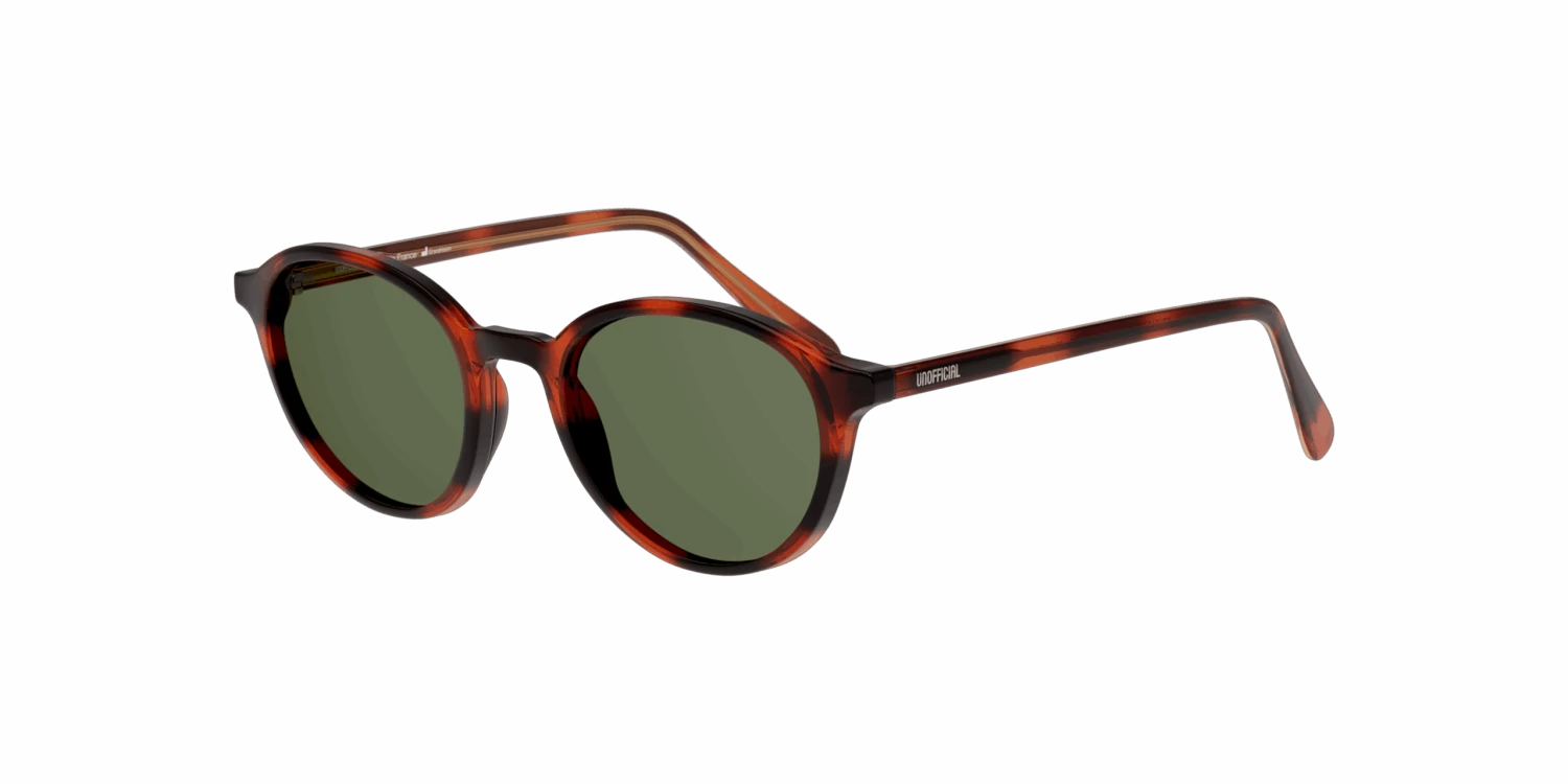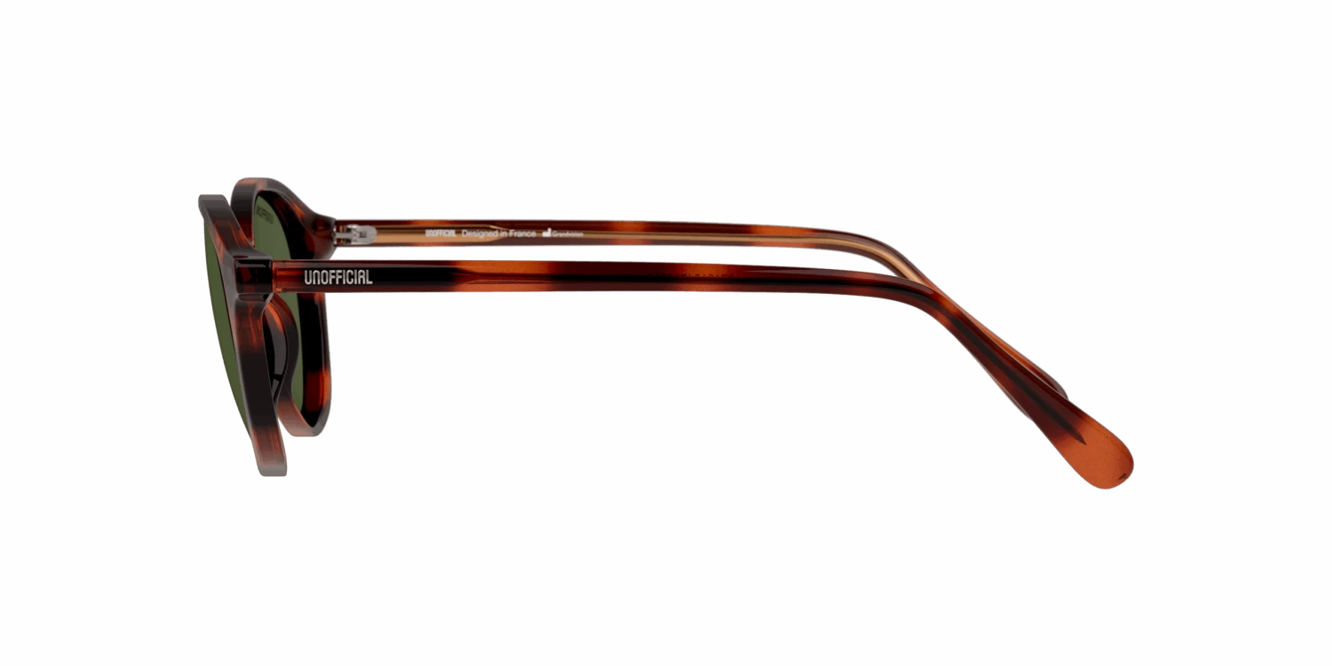 Nieuwe zonnebril nodig? Zoek niet verder! De Unofficial UNST0021 60065692 47/19 is namelijk onmisbaar in jouw collectie. Deze prachtige kinderzonnebril is havana en is gemaakt van kunststof. De groene zonnebrilglazen hebben een kalmerend effect en remmen felle lichtschitteringen. De Unofficial UNST0021 HHE0 heeft een rond montuur. Dit past goed bij een langwerpige, ovale, vierkante of driehoekige gezichtsvorm. Dit montuur valt klein.